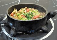 后来努尔哈赤不忘那次用乌龟壳烹制的美食,同时也为了能经常吃到这种美食,专门命人照着乌龟的形状打制一种铁锅,并将这种锅命名为龟锅并指定御膳房专用,从此宫廷龟锅诞生了。